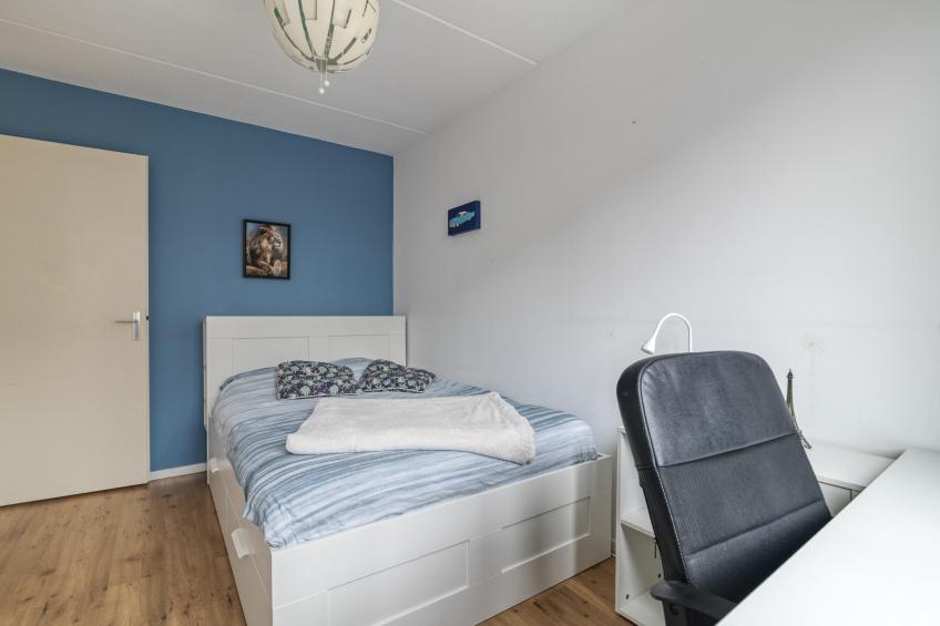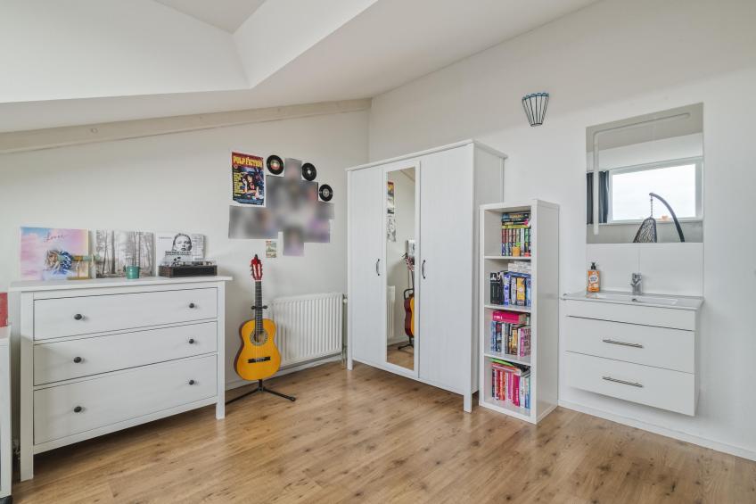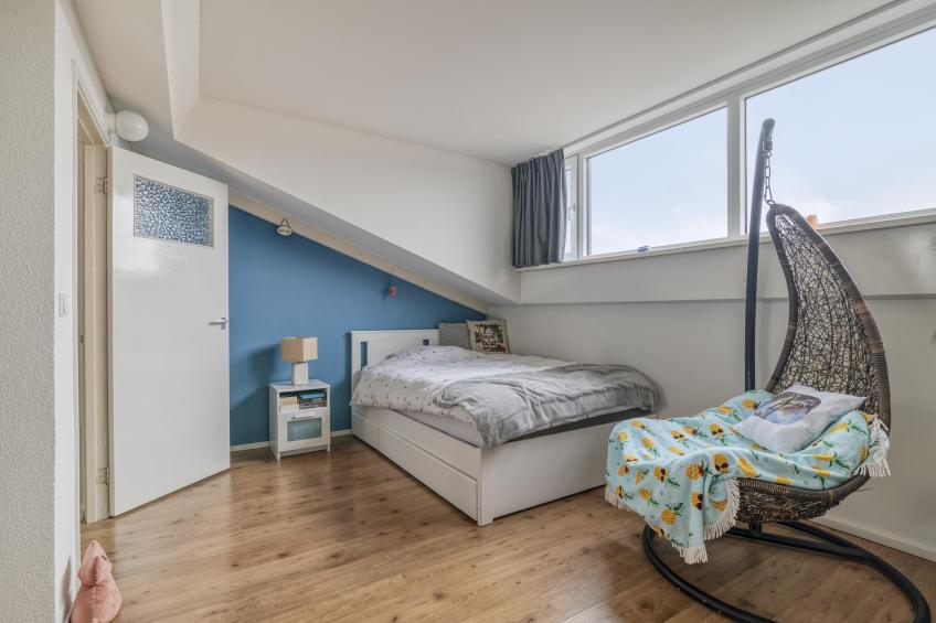 De eerste slaapkamer springt direct in het oog dankzij de royale dakkapel uit 2024, uitgevoerd met kunststof kozijnen. Deze zorgt voor extra ruimte en een prachtige lichtinval. Daarnaast beschikt deze kamer over een eigen wastafel – praktisch en comfortabel, bijvoorbeeld voor gasten of oudere kinderen.