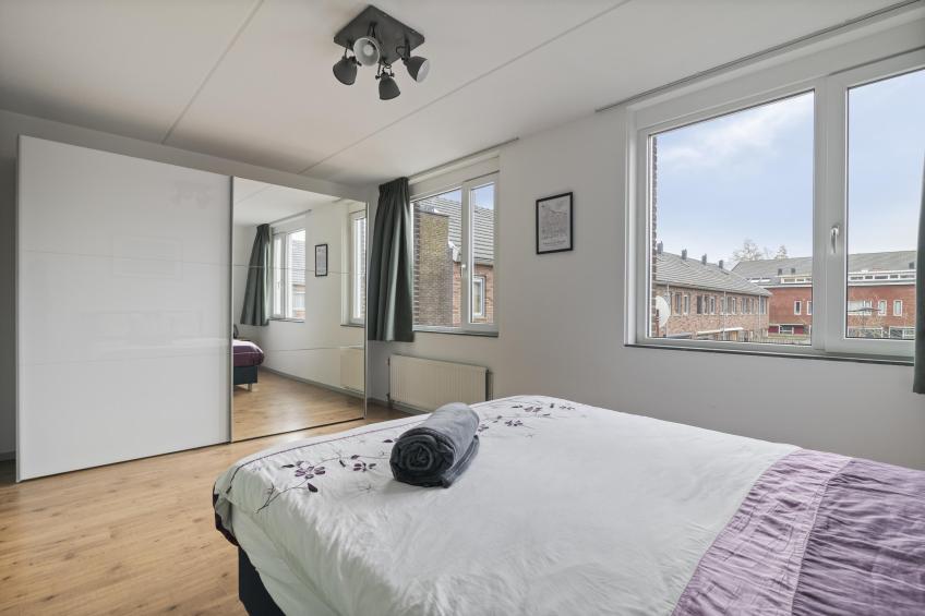 De eerste slaapkamer betreft de royale master bedroom, gelegen aan de achterzijde van de woning. Deze kamer is voorzien van recent geplaatste kunststof kozijnen, wat zorgt voor een verzorgde uitstraling.