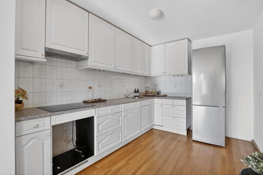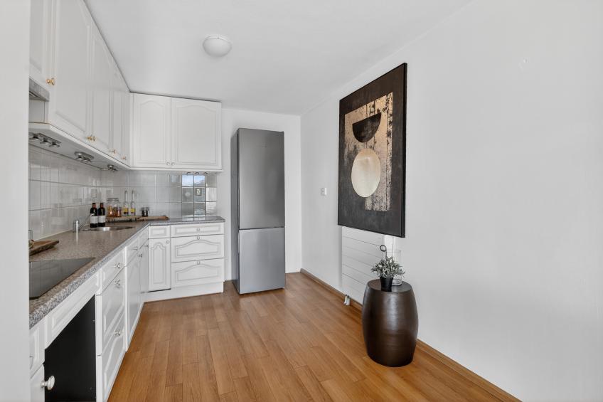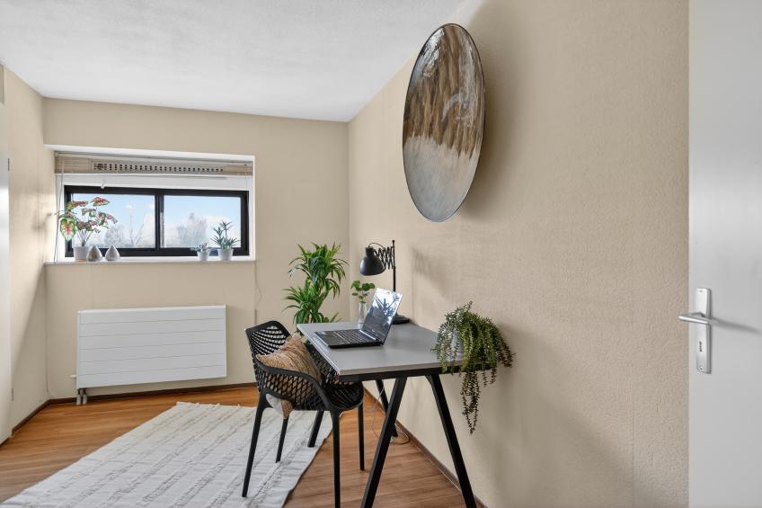 Neat pvc flooring runs throughout the house, creating a clean, calm appearance and a unified interior. The apartment also includes a storage unit in the basement and a shared bicycle shed.