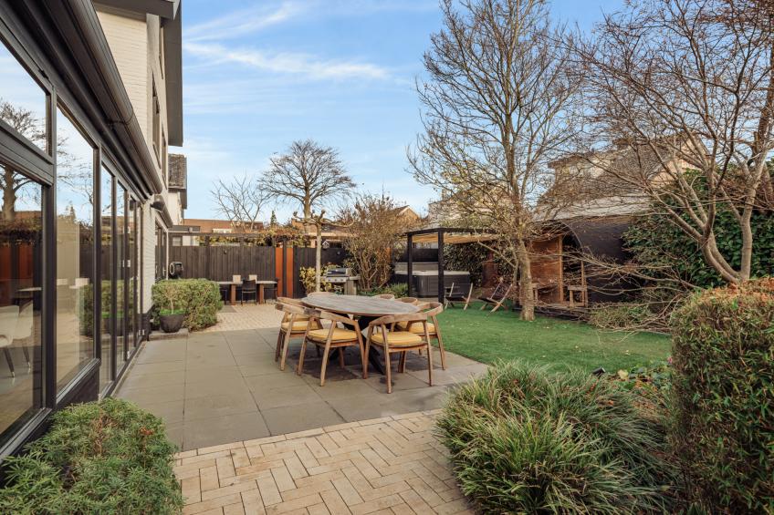 Zowel de voor- als achtertuin zijn met grote zorg en aandacht aangelegd. De voortuin is strak vormgegeven en zorgvuldig onderhouden, waardoor de woning direct een verzorgde en representatieve uitstraling krijgt. Een fraaie entree die perfect aansluit bij de stijl van de villa.