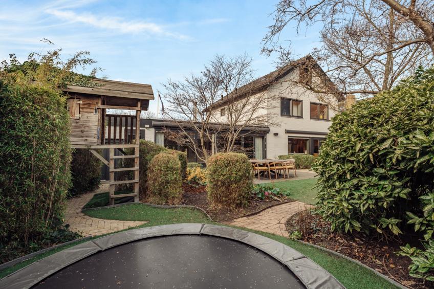 De tuin is bovendien speciaal ontworpen voor ontspanning en plezier: zo vind je er een Finse sauna, een sfeervolle overkapping, een ingebouwde trampoline en een houten speelhuisje, goed voor uren vermaak voor jong en oud. De verzorgde en afwisselende beplanting geeft de tuin extra charme en maakt de sfeer warm, groen en uitnodigend.