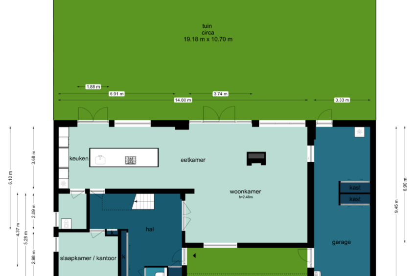 - Verwarmde garage (multifunctioneel inzetbaar) van maar liefst 33m2