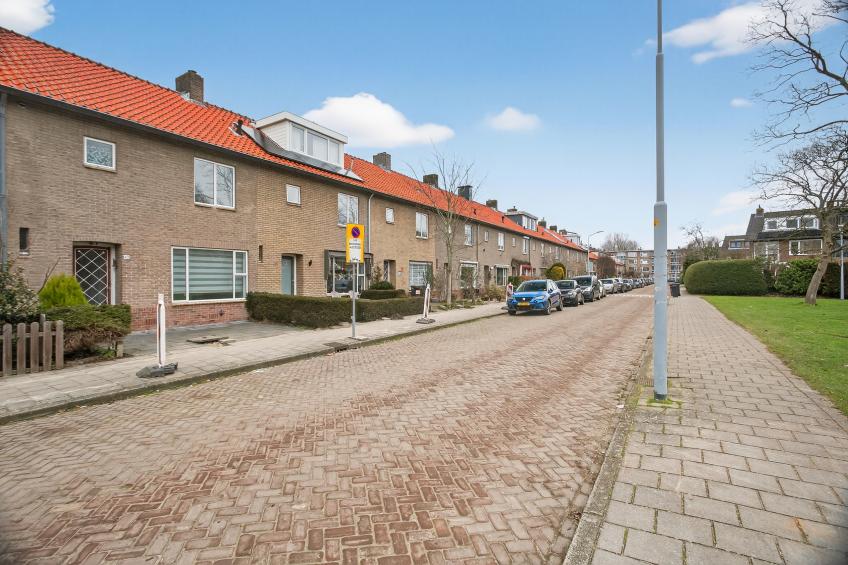 The house has a northwest-facing back garden and a southeast-facing front garden, allowing you to enjoy the sun at any time of the day. The back garden is accessible via a rear entrance, and at the rear of the garden is a stone shed, ideal for storing bicycles, tools, or garden furniture. At the front, the house offers unobstructed views of a playground and a green park, creating a spacious and peaceful feeling. Ample parking is also available right outside the door.