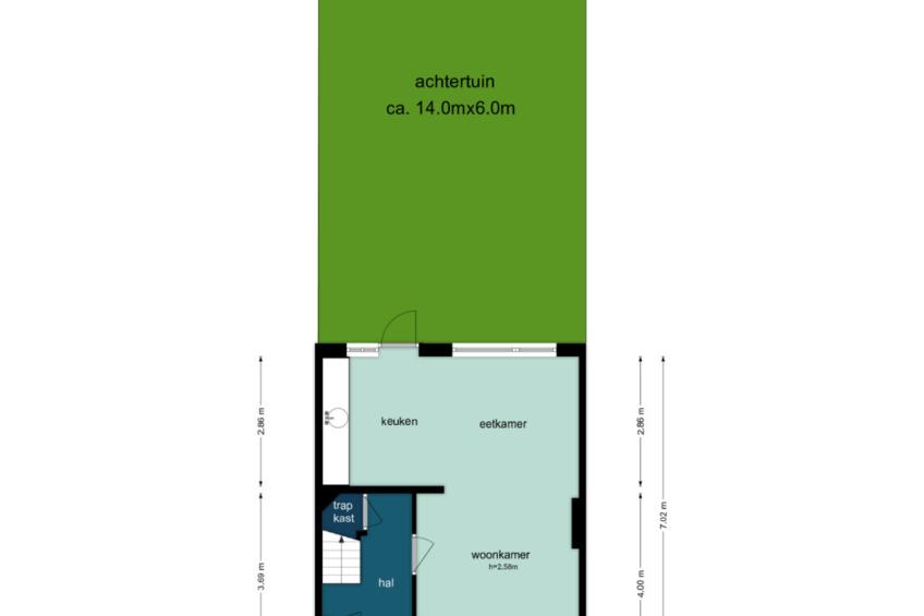 Via de entree komt u in de hal met een zwevend toilet, een ruime trapkast en toegang tot de woonkamer. De woonkamer is licht en ruim dankzij de grote raampartijen. Aan de achterzijde bevindt zich de open keuken met een deur naar de tuin. De begane grond leent zich uitstekend voor een uitbouw aan de achterzijde.