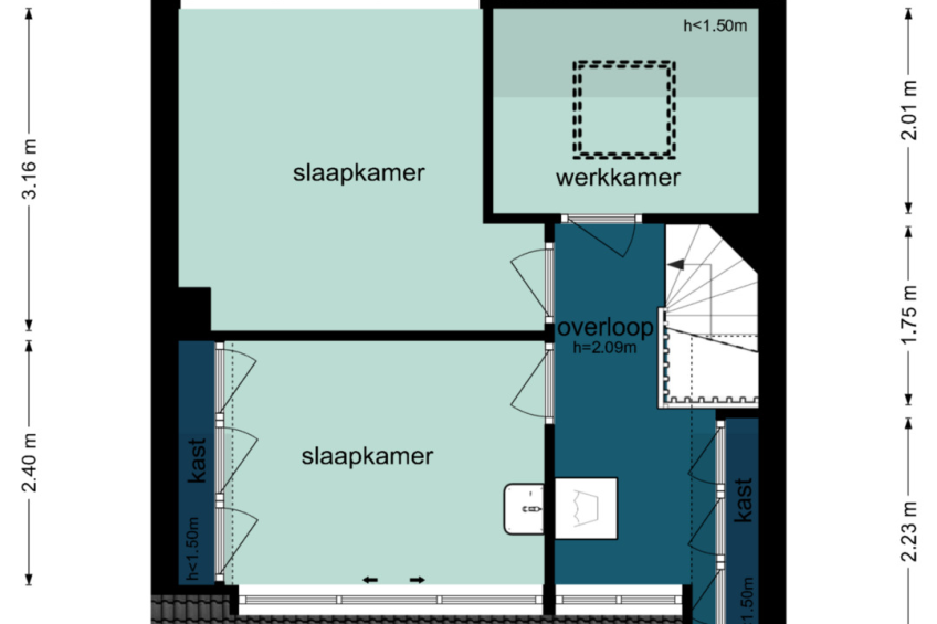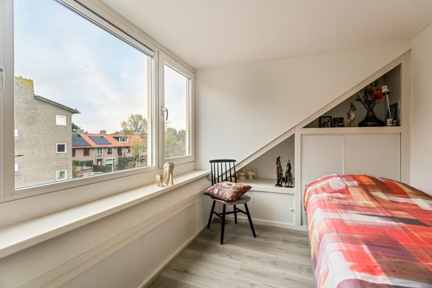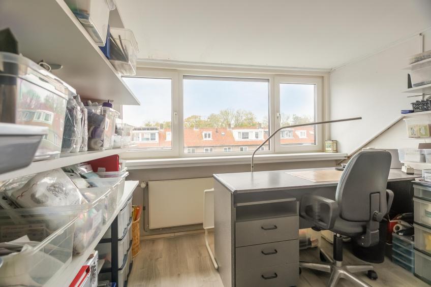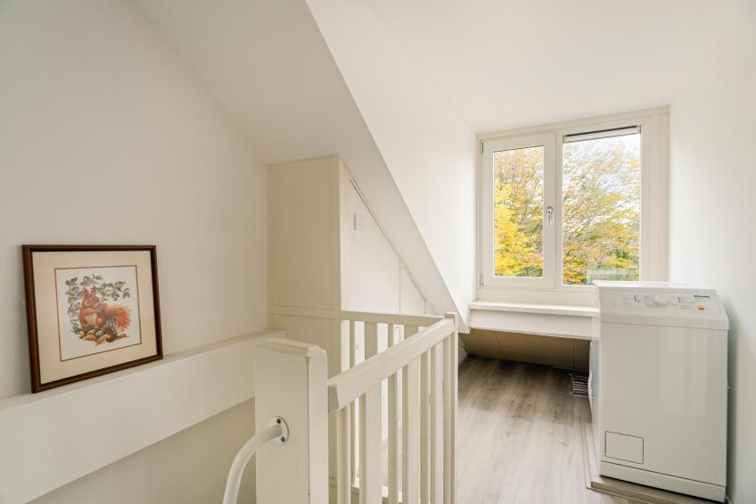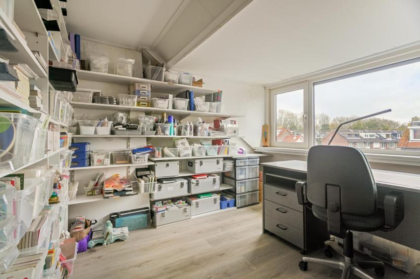 Op deze verdieping vind je nog twee slaapkamers. De overloop biedt ruimte voor de wasmachine en huisvest de netjes weggewerkte CV-ketel (2013), tevens toegang tot een extra ruimte met Velux dakraam wat nu in gebruik is als hobbyruimte.